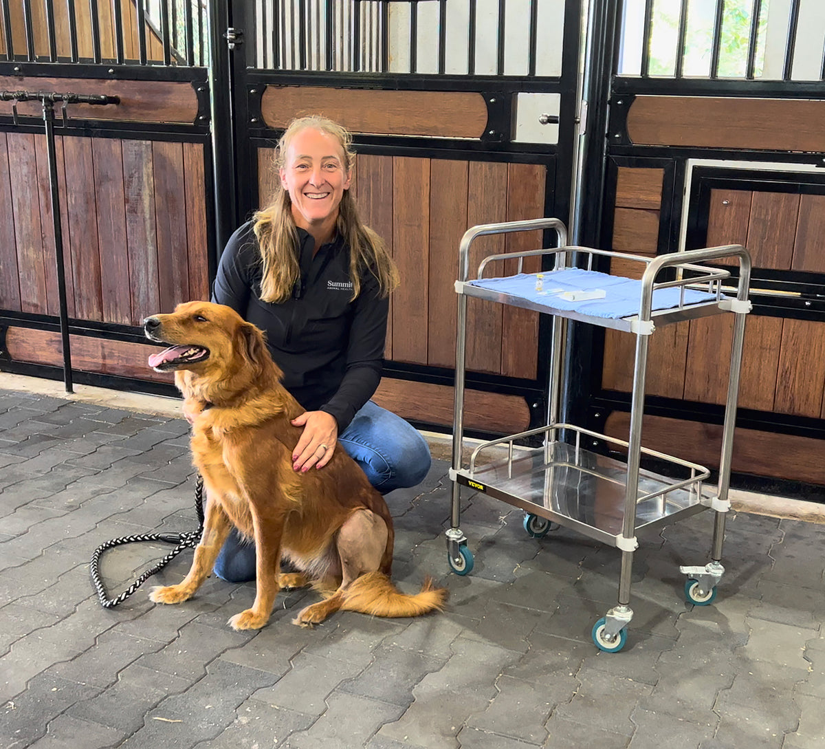 Around this time, Dr. Heather Farmer DVM, was introduced to Dr. Hausman and his work with chondroitin 4-sulfate. Hearing the success stories, Dr. Farmer joined the effort after using the early formulation on her own dog, Ultra, who went from struggling to stand to running behind the golf cart within days.