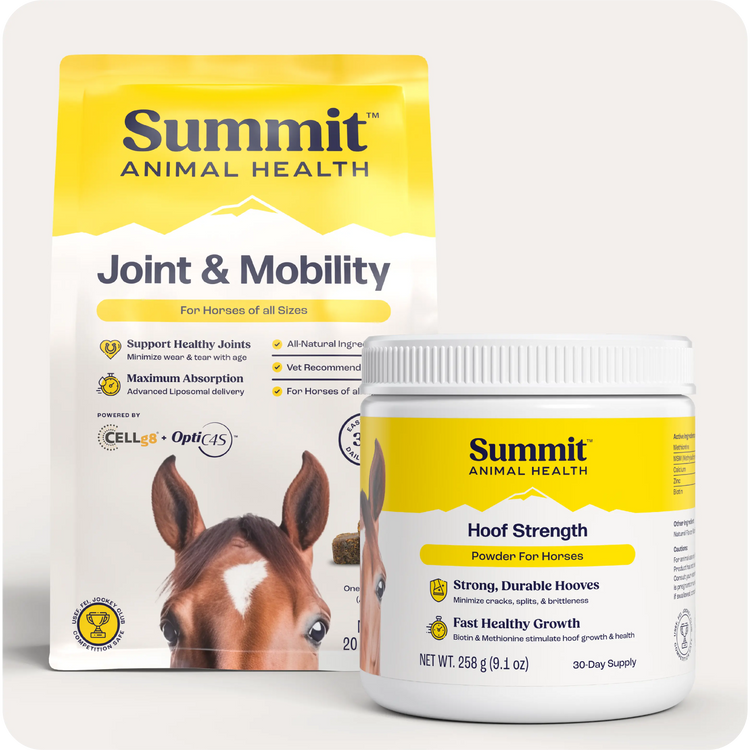 This bundle combines our cutting-edge daily bite joint supplement with our hoof-strengthening formula to keep your horse performing at its peak—every single day.