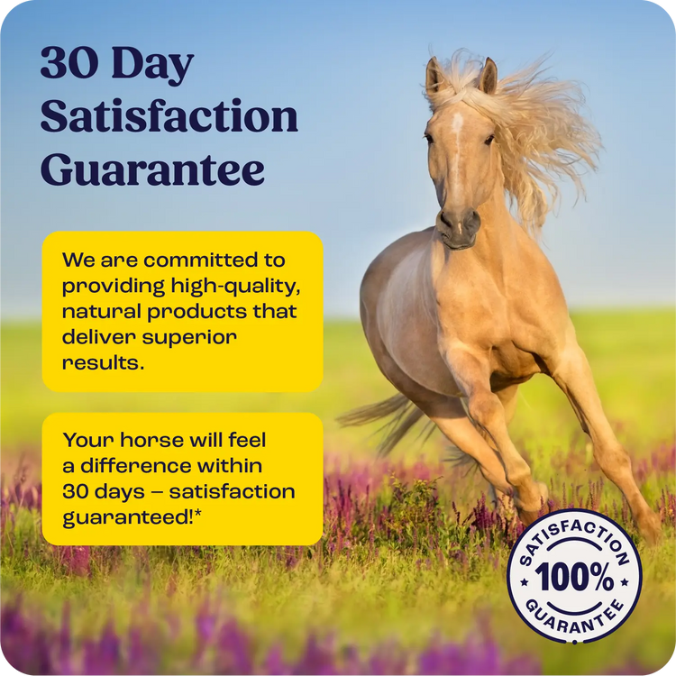 the ground. Target joint discomfort, inflammation, and the effects of aging with our innovative, all-natural formula. Maximize your horse’s comfort and enhance their mobility with our powerful, rapid-relief daily supplement. See the difference within 30 days and help your horse live their best life. Great for horses with needle or injection shyness.