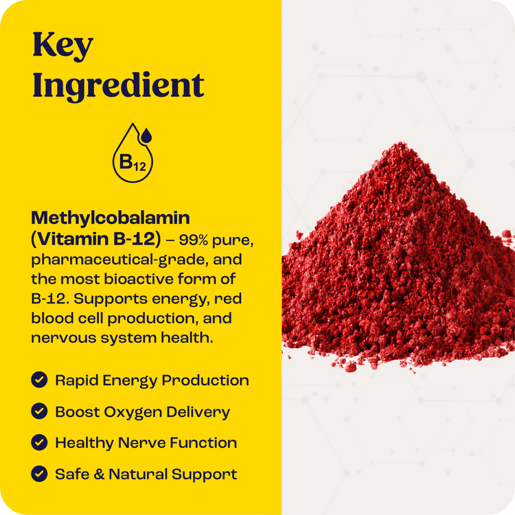 Active Ingredient: 500 mg Pharmaceutical-grade Methylcobalamin (vitamin B-12)
