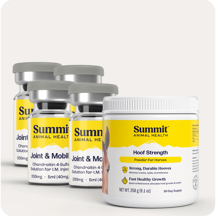 This bundle combines our cutting-edge injectable joint supplement with our hoof-strengthening formula to keep your horse performing at its peak—every single day.
