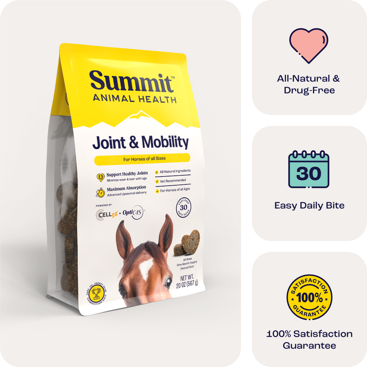 The first feed-through joint supplement powered by CELLg8 Advanced Liposomal Technology. Target joint discomfort, inflammation, and the effects of aging with our innovative daily Bite. Maximize your horse’s comfort and enhance their mobility with our powerful, rapid-relief natural supplement.