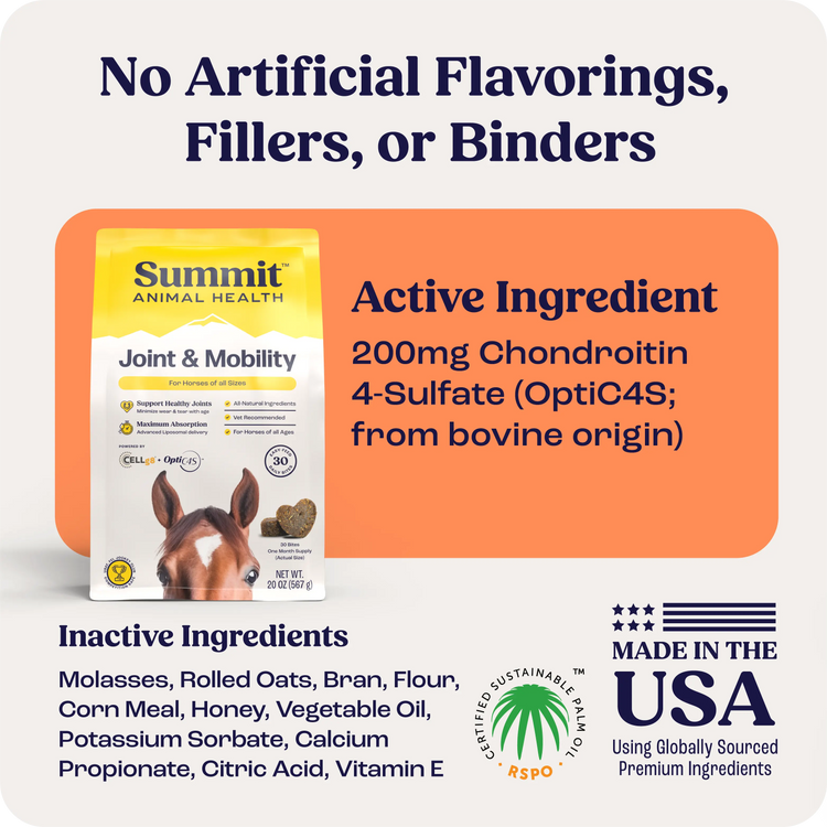 No artificial flavors, fillers, or binders. Safe for long-term use with no risky side effects or adverse reactions to other medications. USEF & FEI Compliant!