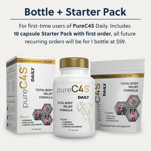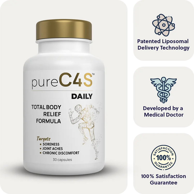 PureC4S is the ultimate pharmaceutical-grade Chondroitin 4-Sulfate supplement powered by a patented liposomal delivery system for maximum absorption and drug-free total body relief. Chondroitin 4-Sulfate works throughout the body to naturally manage inflammation, the effects of aging, and wear and tear over time. Experience comfort and relief you can feel in days, not months – feel the difference for yourself!