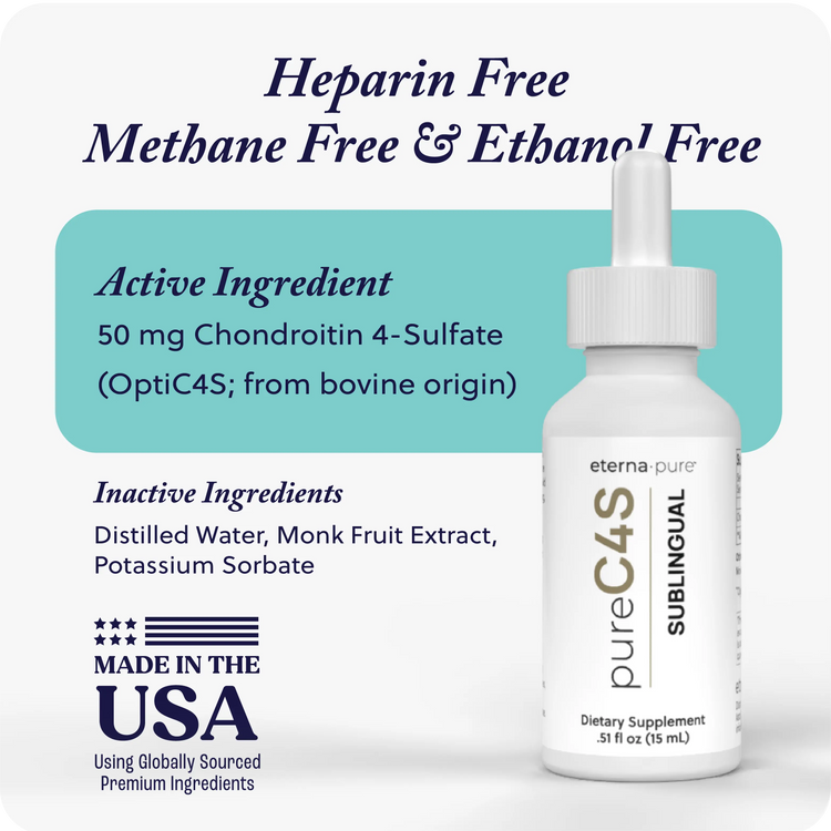 PureC4S Sublingual is a pharmaceutical-grade Chondroitin 4-Sulfate supplement designed for rapid, effective absorption under the tongue. Ideal for those who prefer to skip capsules, this scientifically backed formula delivers Chondroitin 4-Sulfate to support joint health, reduce inflammation, and combat the effects of aging and daily wear and tear. Feel real, noticeable relief in days—not months—and rediscover how good your body can feel.
