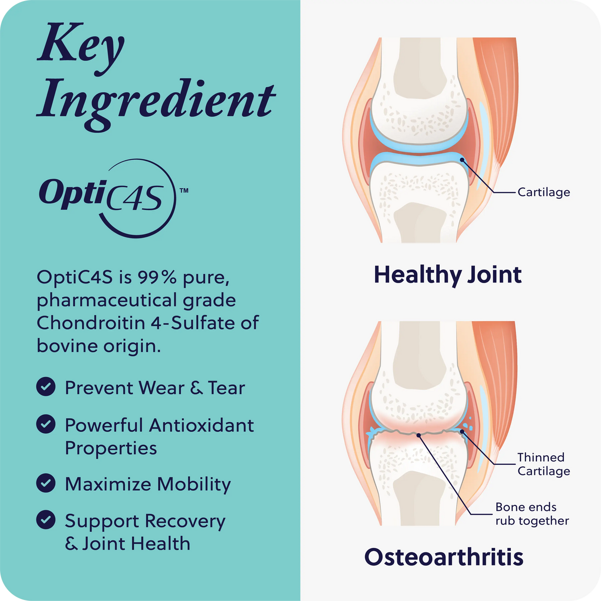 Active ingredients: Chondroitin 4-Sulfate, 50 mg (OptiC4S, from Bovine origin)